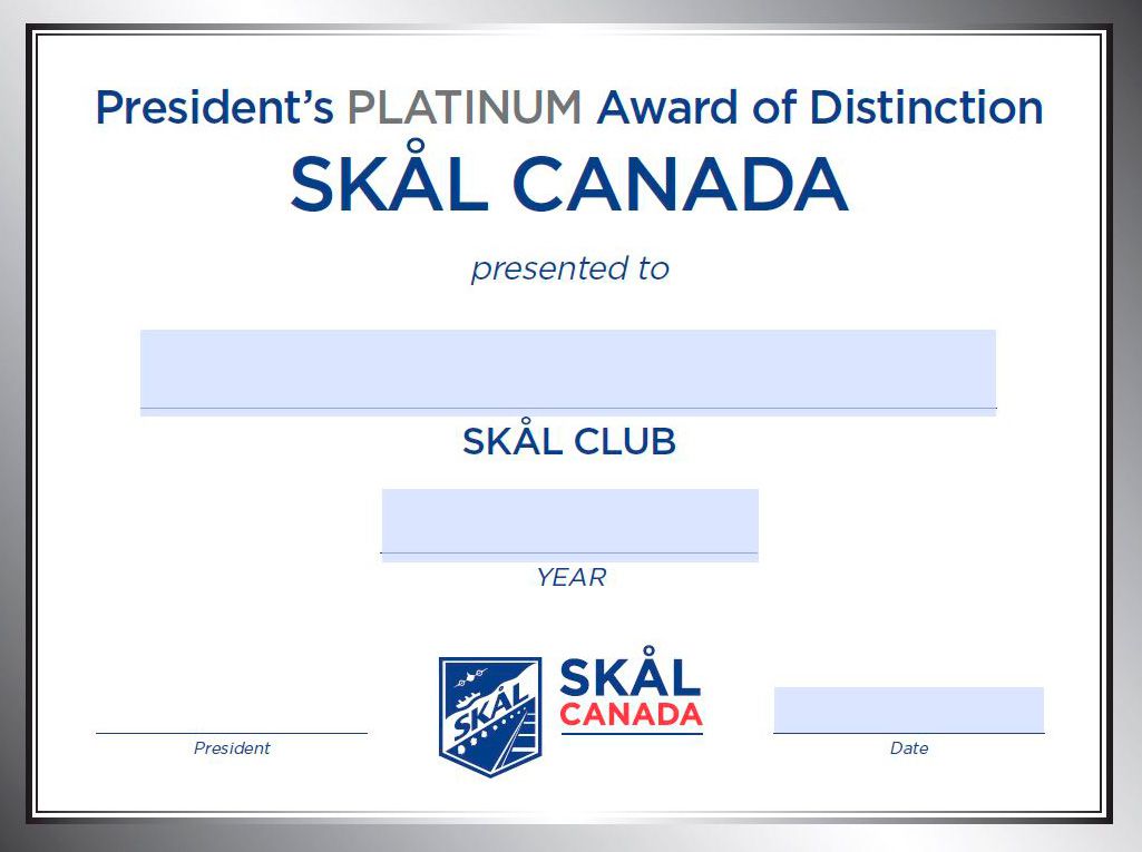 Skål International Canada just concluded the second year hosting our club recognition program titled ‘President’s Awards of Distinction’ (PAD’s).
