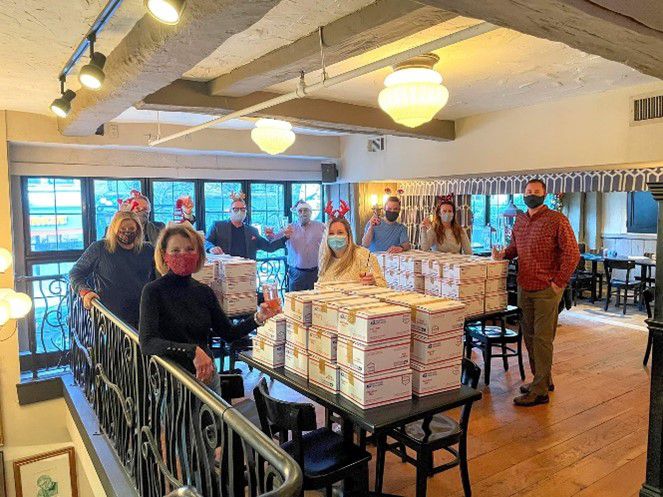 Los miembros de la Junta Directiva se reunieron y desarrollaron un plan. El Skålega y Presidente del Grupo Hotelero Saunders, Dan Donahue, coordinó un reparto de champán y chocolates Lindt que se entregaría a cada miembro de Skål International que se inscribiera con antelación. Miembros de la Junta Directiva se dieron cita en el Hotel Lenox el viernes 11 de diciembre para empaquetar las cajas regalo que incluían un boleto para la rifa navideña para cada invitado. Por primera vez en 2020, íbamos a hacer una rifa y todo el mundo estaba muy emocionado.