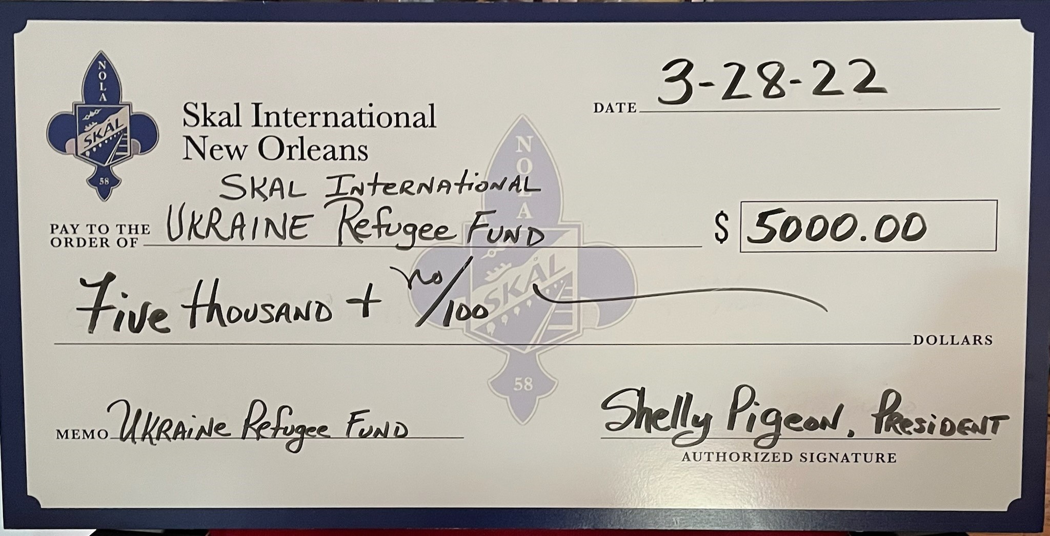 Skål International New Orleans, part of the only worldwide professional organization promoting global Tourism and friendship, uniting all sectors of the Tourism industry, has raised $5,000 for Ukrainian refugees.