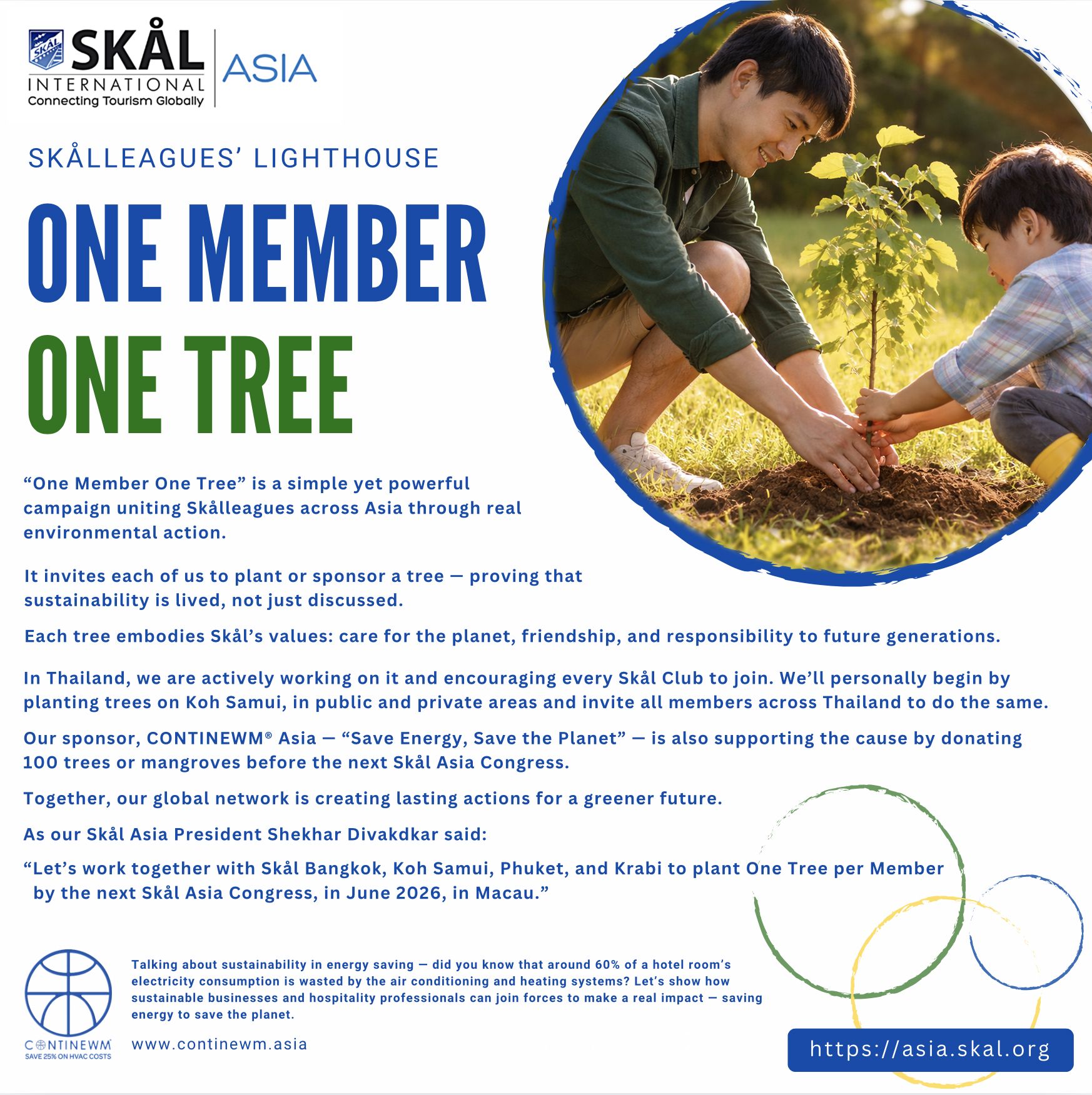 Following the Skål International World Congress 2025 in Cusco, Peru, member since 2004 and Director for Sustainability and Environment for Koh Samui Island, Claudio Cerquetti, agreed to support Skål International Asia President Shekhar Divadkar in spreading the “One Member, One Tree” initiative amongst all Skål Clubs in Thailand, wherein every member is encouraged to plant one (sapling) tree before the Skål International Asia Congress in Macau in June 2026.