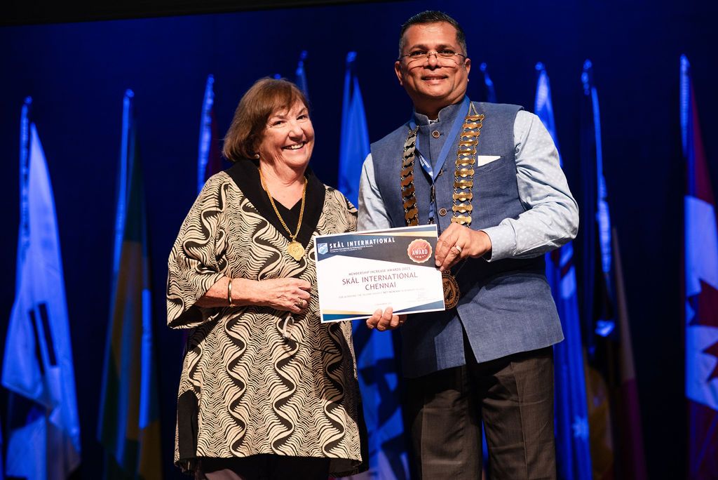 El presidente de Skål International, Juan I. Steta, también hizo entrega de los reconocimientos y premios presidenciales y dio las gracias a todos los miembros que habían trabajado tan duro en los distintos comités durante el año.