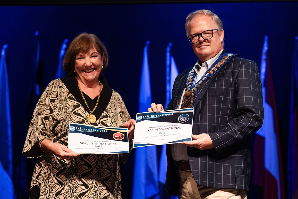 Skål International fue galardonado por la Organización Mundial del Turismo por sus 30 años de afiliación durante la ceremonia de entrega de premios que tuvo lugar el 16 de octubre de 2023 en la 44ª Sesión Plenaria de Miembros Afiliados de la OMT, durante la 25ª reunión de la Asamblea General de la OMT en Samarcanda, Uzbekistán.