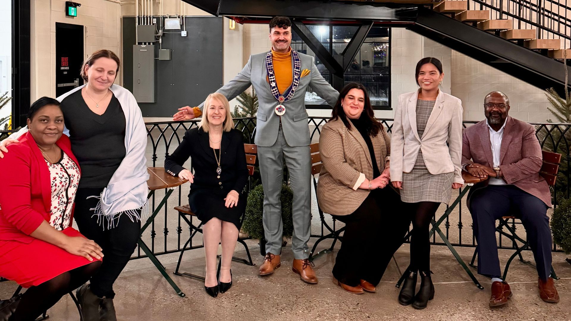 De izquierda a derecha: Nadia McCormack-McIntyre (miembro de la Junta Directiva), Amy Shackleton (anfitriona), Georgia Raso (miembro de la Junta Directiva), Weireen Velasquez (miembro), Annette Lee (miembro), Brent Smith (invitado), Luca Monti (miembro de la Junta Directiva), George Thomas (miembro de la Junta Directiva).