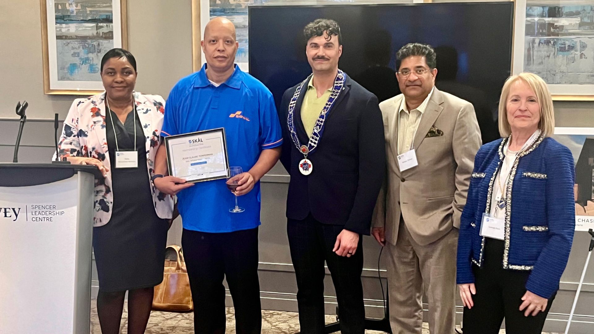 De izquierda a derecha: Nadia McCormack-McIntyre (miembro de la Junta Directiva), Jean-Claude Temperman (nuevo miembro, Signal), Luca Monti (miembro de la Junta Directiva), George Thomas (miembro de la Junta Directiva), Georgia Raso (miembro de la Junta Directiva).